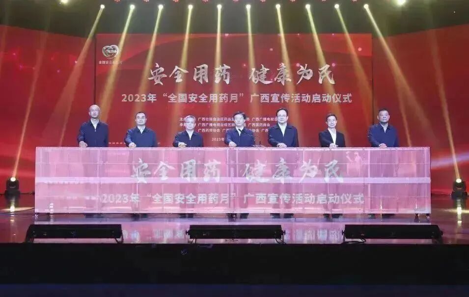 苗庆旺在启动仪式上强调指出,药品安全事关人民群众身体健康和生命安全,责任重于泰山。全区各级各有关部门要深入贯彻落实习近平总书记关于药品安全重要指示批示精神,坚持人民至上、生命至上,坚决落实“四个最严”要求,以开展“安全用药月”活动为契机,深化拓展药品安全巩固提升行动,持续推进药品安全治理体系和治理能力现代化,抓实抓好药品全生命周期各环节质量监管,依法严厉打击药品安全违法犯罪行为,广泛凝聚安全用药社会共识和治理合力,积极服务保障医药产业高质量发展,更好守护和促进人民群众健康福祉。 林卫致辞 自治区卫生健康委副主任、疾控局局长林卫在致辞中表示,安全用药是每个人的基本权利,安全用药不仅仅是药品质量问题,更是关系到人民群众健康问题。启动安全用药月宣传活动,目的就是要呼吁大家关注药品安全,提高自我保护意识,共同营造安全、放心、健康用药环境。全区卫生健康部门将持续强化医疗机构临床用药安全管理,坚决落实用药安全制度,提高用药安全水平,保障广大人民群众用药安全,推动安全用药意识的普及和提升。 苗庆旺(前左一)参观广西医药产业创新发展成效宣传展 活动结束后,苗庆旺参观了广西医药产业创新发展成效宣传展,通过药品、医疗器械名特优产品的展示,反映广西医药企业的科技创新成效。 2023年“全国安全用药月”广西宣传活动为11月中旬至12月中旬。活动期间,广西药品监管部门将结合实际、突出特色在全区各地组织开展形式多样、内容丰富的宣传活动。紧扣“安全用药 健康为民”主题,把保障儿童、妊娠期和哺乳期妇女、老年人等特殊人群的安全用药作为宣传重点,开展药品安全突发事件应急演练、药品安全网络知识竞赛、药物警戒“走边关,进毛乡”宣传、“寻找身边最美药师”宣传、中小学生“药品安全 你我同行”研学实践等系列科普宣传活动,把药品安全法律法规、科学知识播撒城乡、根植千家万户。 自治区药监局党组成员、副局长韦广辉、万秋、沈宏睿参加活动。局机关处室、南宁检查分局、直属单位和南宁市市场监管局负责人,广西医药商会、药师协会、医疗器械行业协会、化妆品协会负责人,两品一械生产经营企业代表,新闻媒体记者等近200人参加活动。