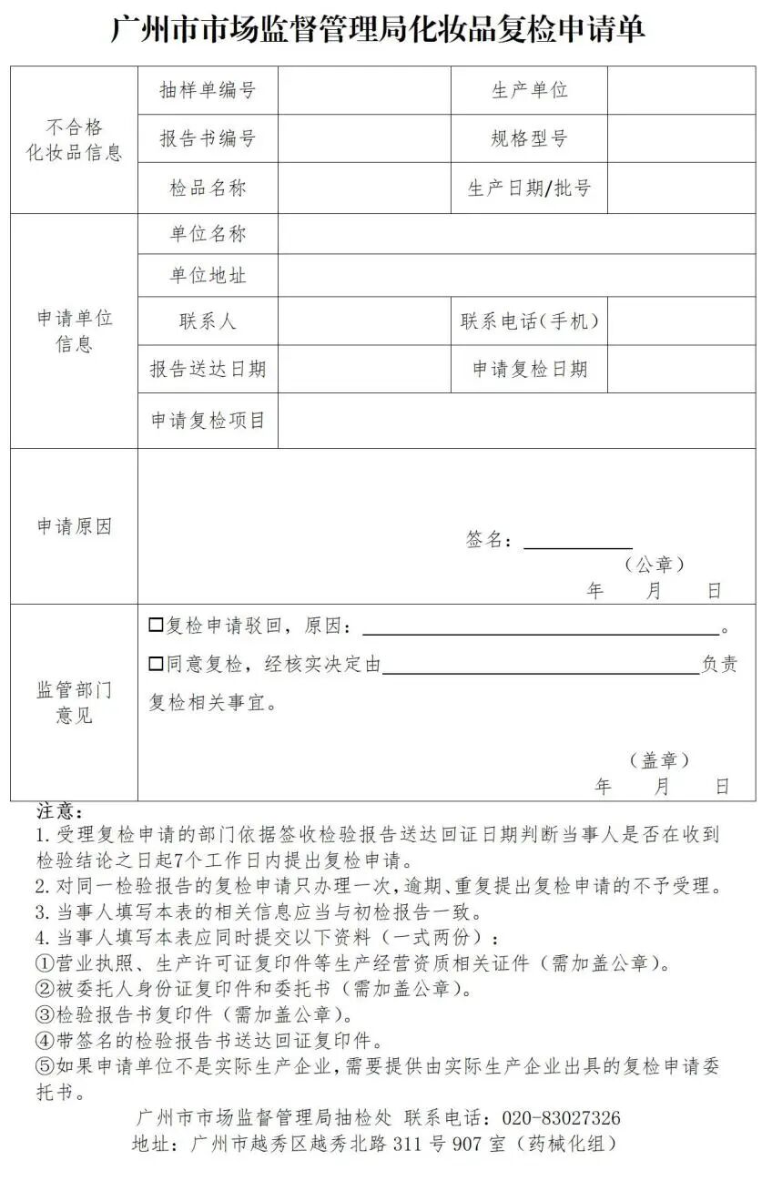 附件:广州市市场监督管理局化妆品复检申请单.docx