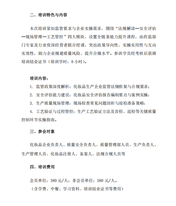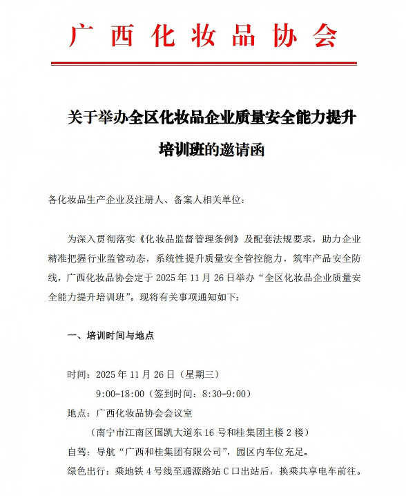 关于举办全区化妆品企业质量安全能力提升培训班的通知